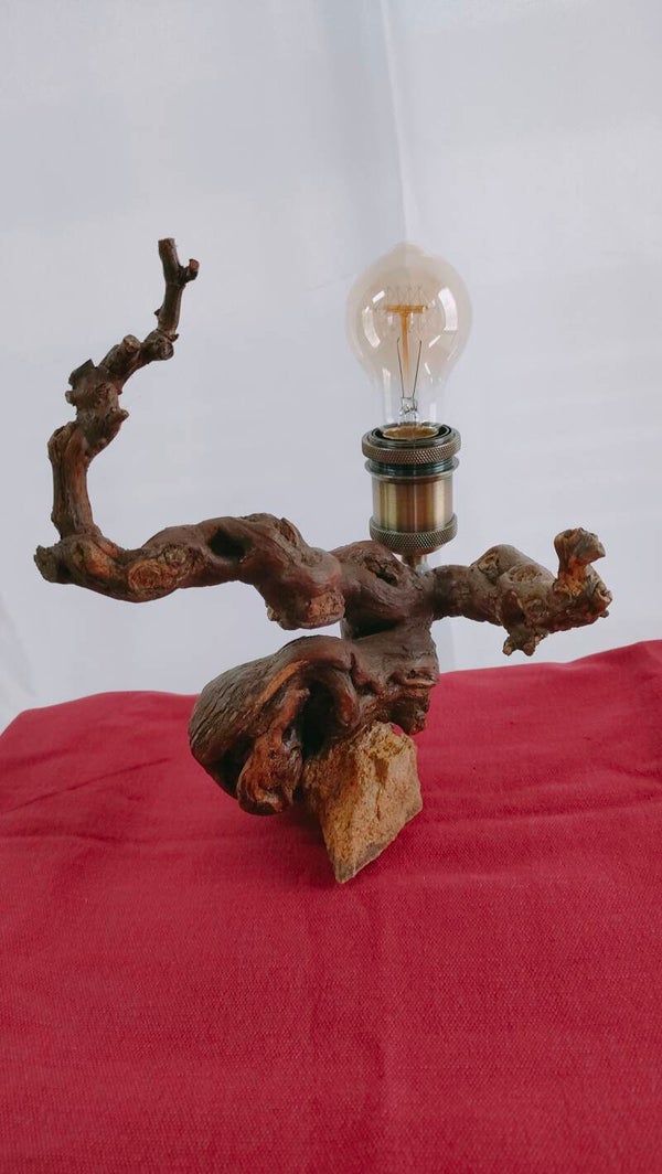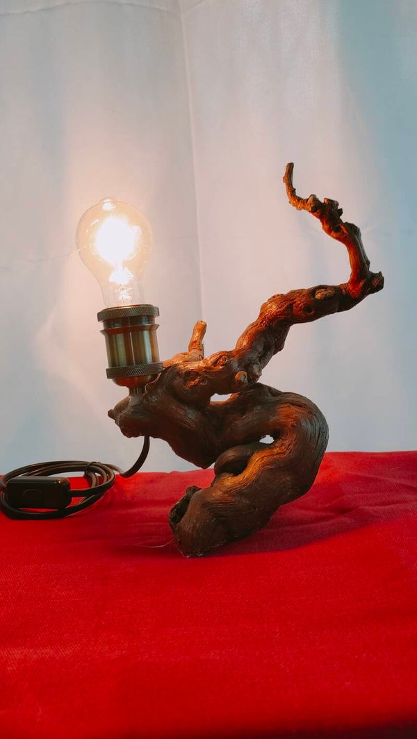 Lãmpara de mesa. Realizada artesanalmente a partir de maderas de vidConsta de un punto de luz acoplado en la propia madera, para bombillas E-27 y casquillos rústico. (No incluye bombilla)