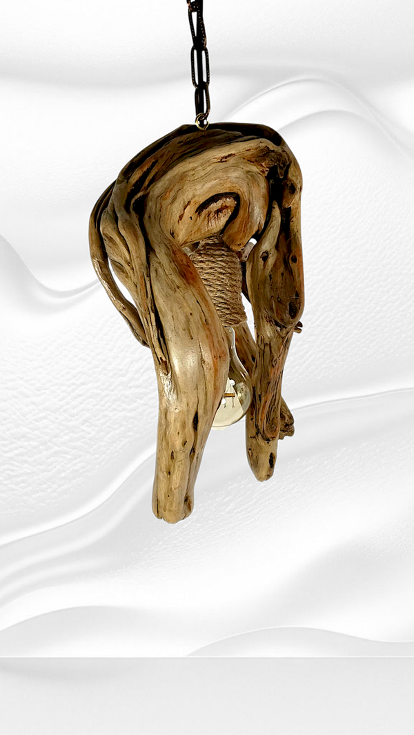 Preciosa lámpara colgante hecha a mano con madera natural.