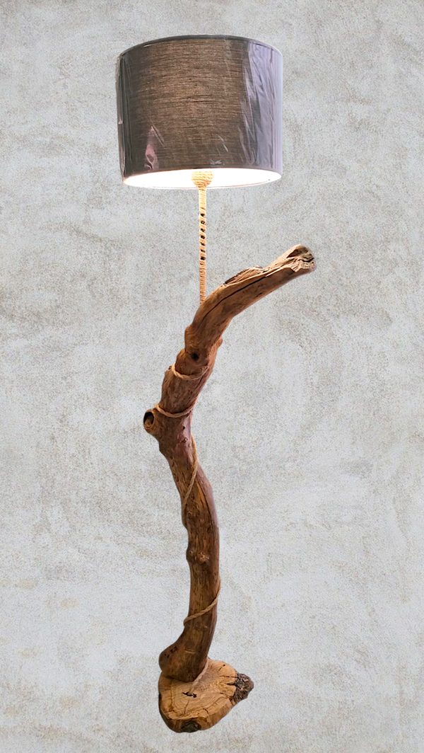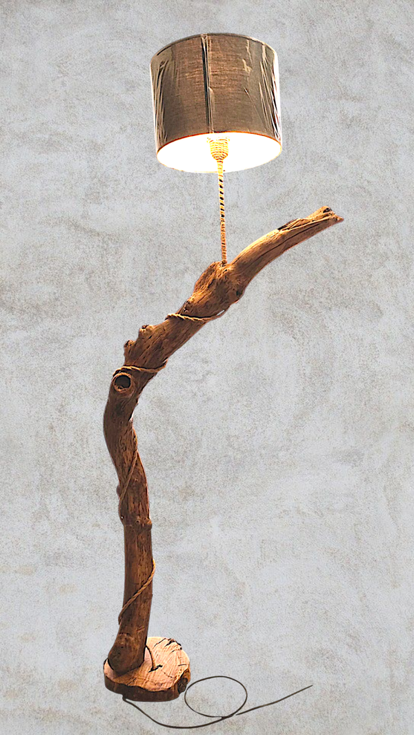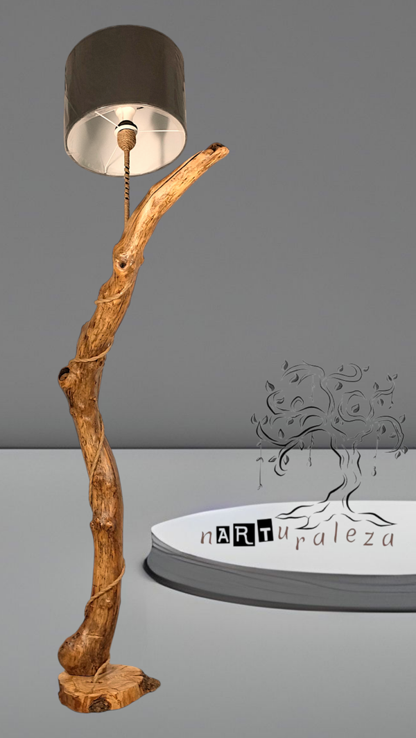 Lámpara de pie de 165cm de alto. Realizada de manera artesanal a partir de un tronco se madera natural Perfecta para añadir un toque rústico y original a tu hogar.