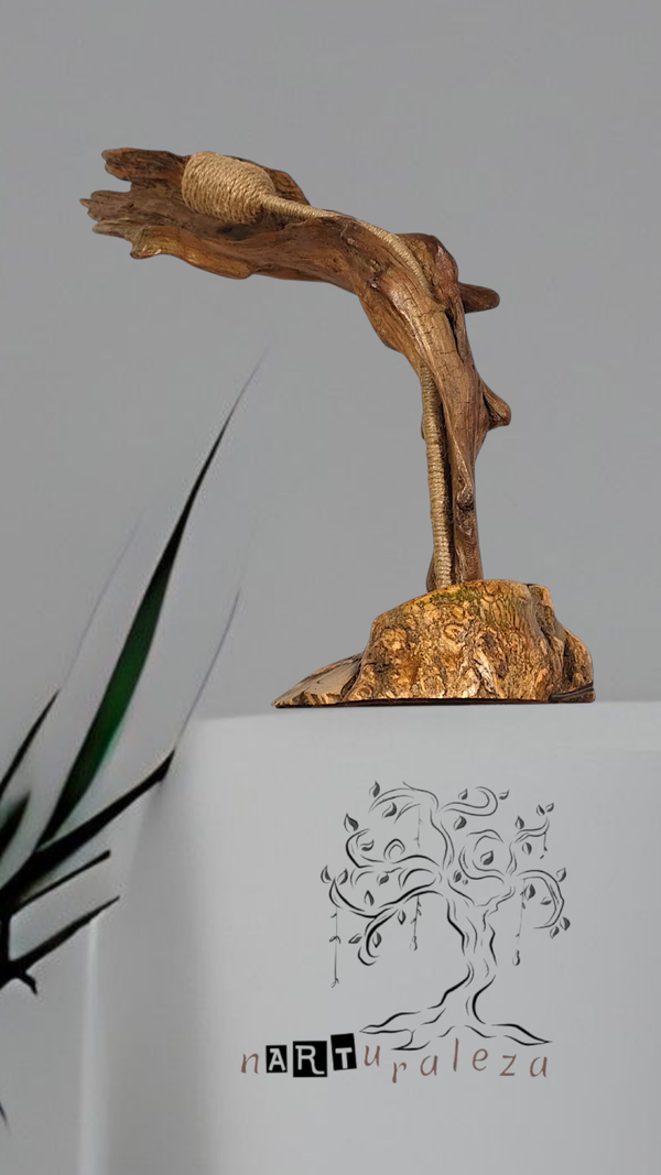 Original lámpara de mesa con un diseño único y natural. Fabricada de manera artesanal a partir de un fragmento de madera natural.